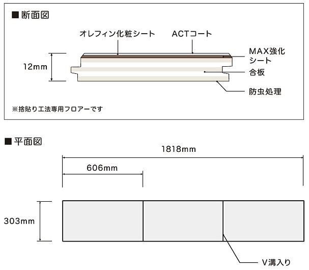 サイズ:12×303×1,818mm 6枚 / ケース3.3m2入