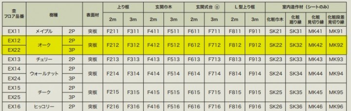 東洋テックス 3m玄関巾木 杢 EX12 EX22対応 室内造作材 F512オーク