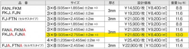 3.0mm ・ 3 X 9 ( 935mm X 2755mm ) ± 2mm