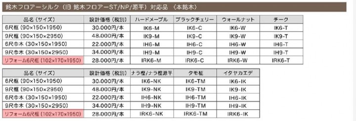 イクタ フロア造作材 リフォーム6尺框 銘木フロアーシルク(旧銘木フロアーST)対応 【代引不可】 ■ 色 チーク ■ 柾目 X 板目 X 長さ ( mm ) 102 X 170 X 1950 それぞれの床材によく馴染み、穏やかで落ち着いた表情を演出します