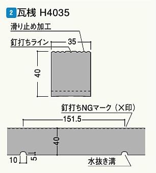 9本入 ELH3 花桟・登り淀 瓦桟H4035 40×35×3000mm (水抜溝・滑止加工付) フクビ化学工業 【代引不可】