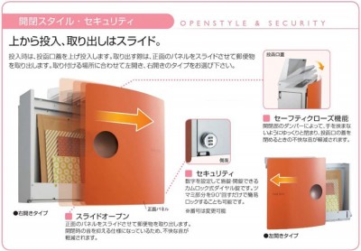 取り出す際は、正面のパネルをスライドさせて郵便物を取り出します。