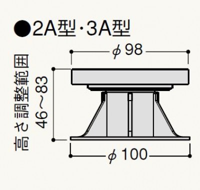 マルチポスト 3A型 ● 高さ調整範囲:59〜83mm ● 最大荷重強度:9.15kN ※ 耐荷重値は最大L寸法時の測定値であり、 保証値ではありません。 ● コ ー ド :MPST3A ● カ ラ ー :ブラック ● オール樹脂製である為、腐朽はありません。 ● オール樹脂化で高耐水性を実現しました。 ● 屋外使用を考慮、長期間設計圧縮耐荷重を 維持できる耐候性樹脂製です。 ● リサイクルし易い設計です。 ● 天面の樹脂台板を丸型にする事で、壁際の 施工が容易です。