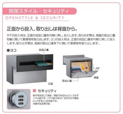 取り出す際は、背面の取出口蓋を下に開いて郵便物を取り出します。