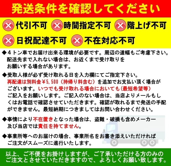 ※ 配送の際、時間指定はできませんので必ず、常に荷受け